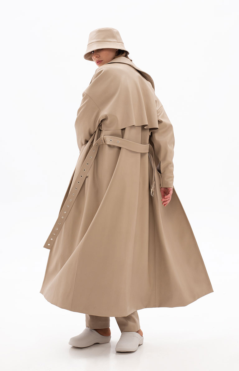 BEIGE ECO-LEATHER TRENCH
