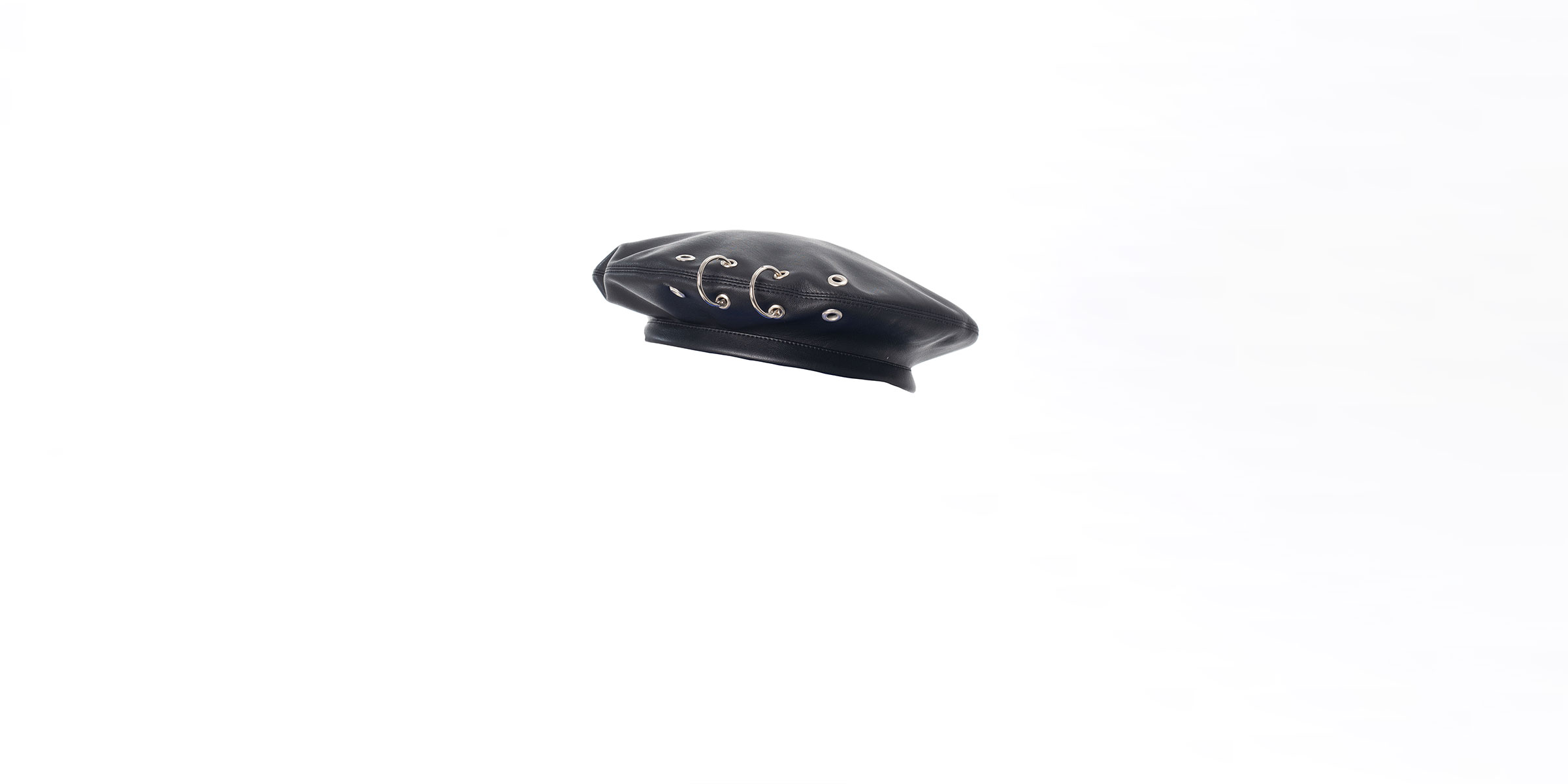 Taking inspiration from the Traditionally-shaped French beret, VERTIGO brings forward its iteration with metal ring embellishments for a modern and naughty twist. Without compromising from its timeless design, this beret can easily become an integrating part of any outfit: be it a biker look, a casual or sporty outfit, a more formal office attire, or even matched with an elegant evening dress and high heels.