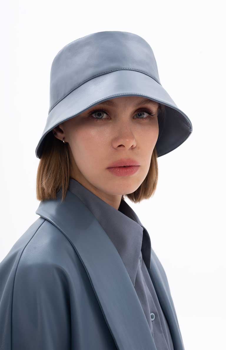 PASTEL BLUE ECO-LEATHER BUCKET HAT