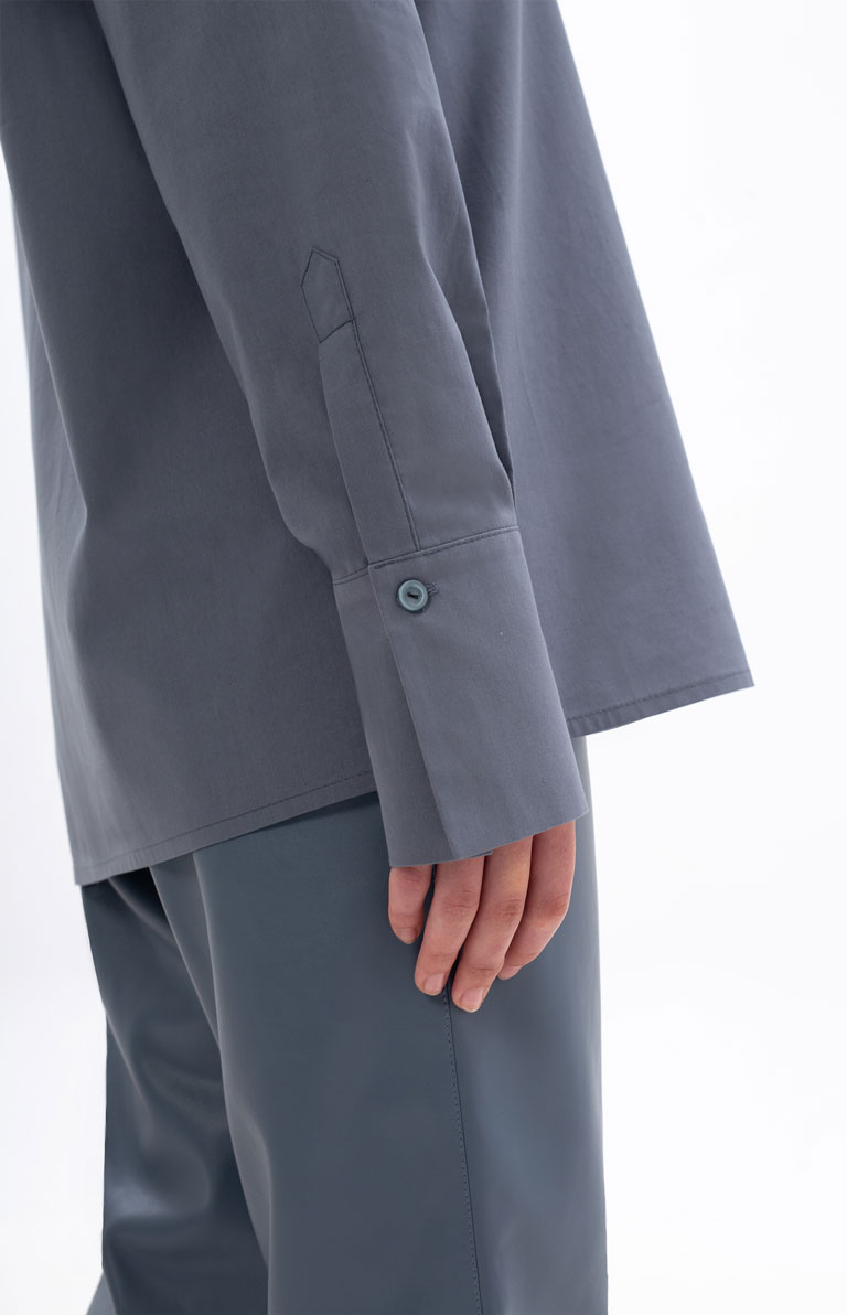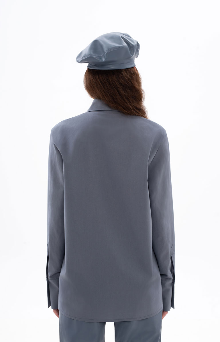 In the attempt to find the recipe for the perfect Women's Shirt, VERTIGO presents to you what it feels like the result of its endeavour. While seaming perfectly neat, or simple, is actually complex in its simplicity. Having an armour-like robust draping, we gave this shirt our signature elements: a spread collar with sharp edges and a elongated cuff with our representative single pleat at the sides. Found in the design of our jackets and trench coats, such a pleat adds volume and allows for a feminine but classy aesthetic. The carefully selected 8 colourways make such a garment a timeless essential that can be easily incorporated in both sophisticated and everyday looks.