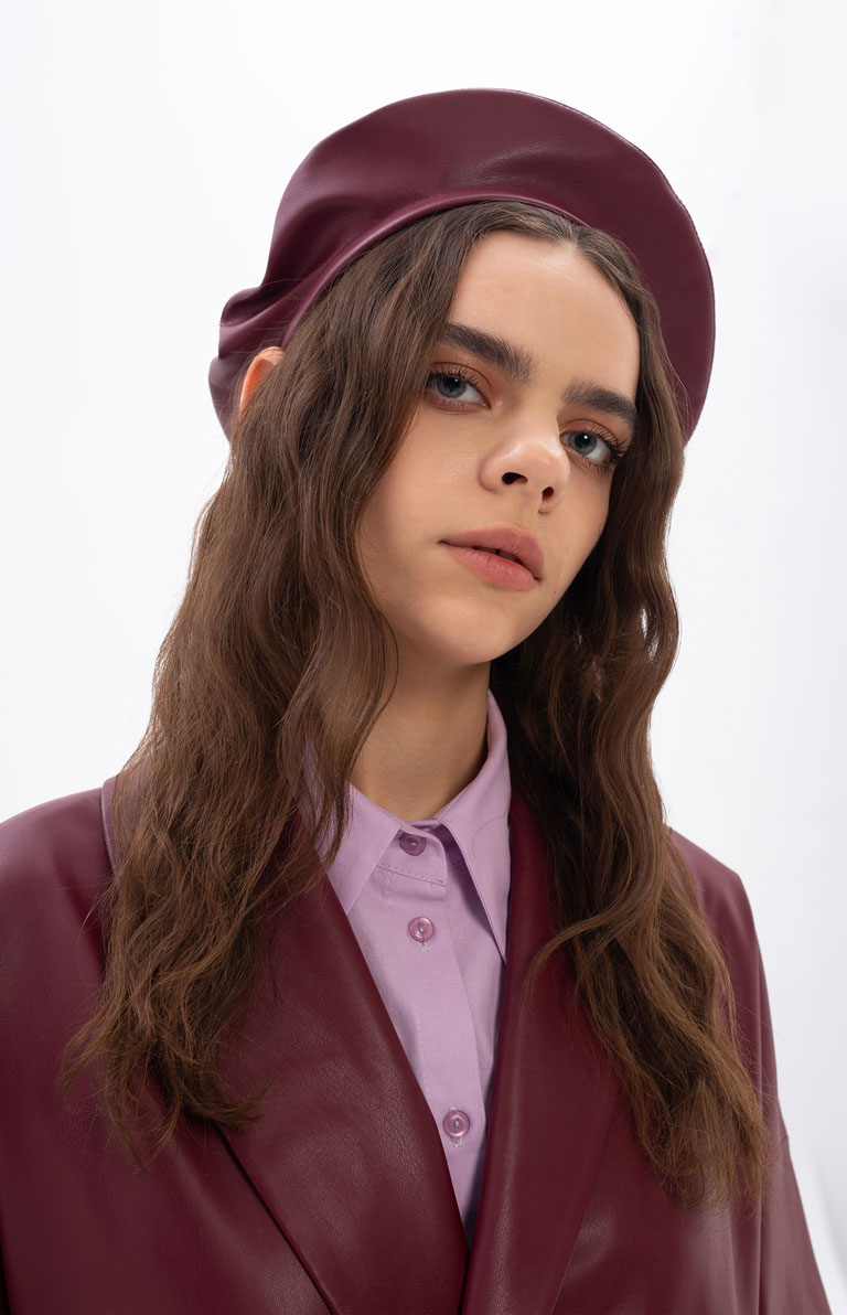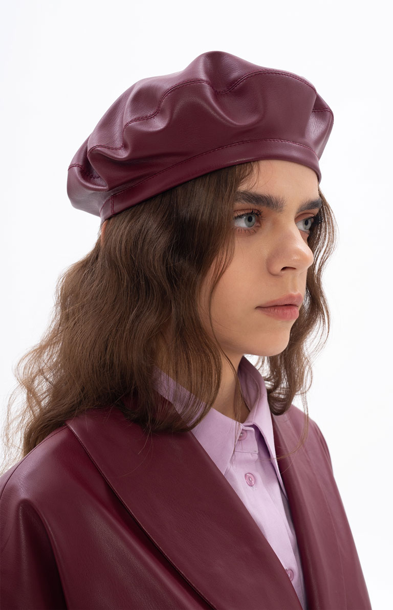 VERTIGO takes the 19th-century classic headgear (le béret) and infuses contemporaneity by providing this piece in vibrant colour ways (such as pomegranate). Made in our cozy atelier in Moldova by our young, enthusiastic and caring team, VERTIGO hopes that this beret will make you feel that "eureka" moment of "finally" finding the head accessory you've been looking for. It's versatility allows you to wear it in elegant, casual, and party outfits. For a matchy outfit, check out our eco-leather pants, biker jacket and shawl trench coat in the same rich and exquisite pomegranate colour.
