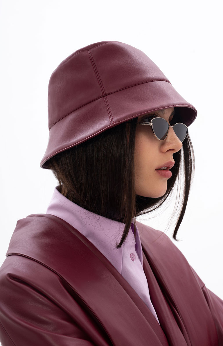 POMEGRANATE ECO-LEATHER BUCKET HAT