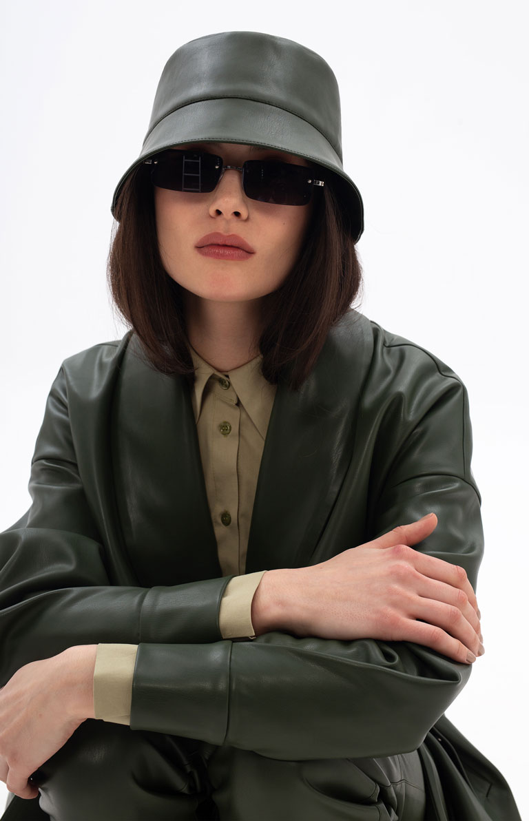 FOREST GREEN ECO-LEATHER BUCKET HAT