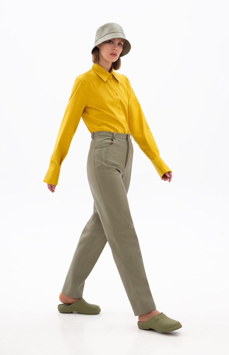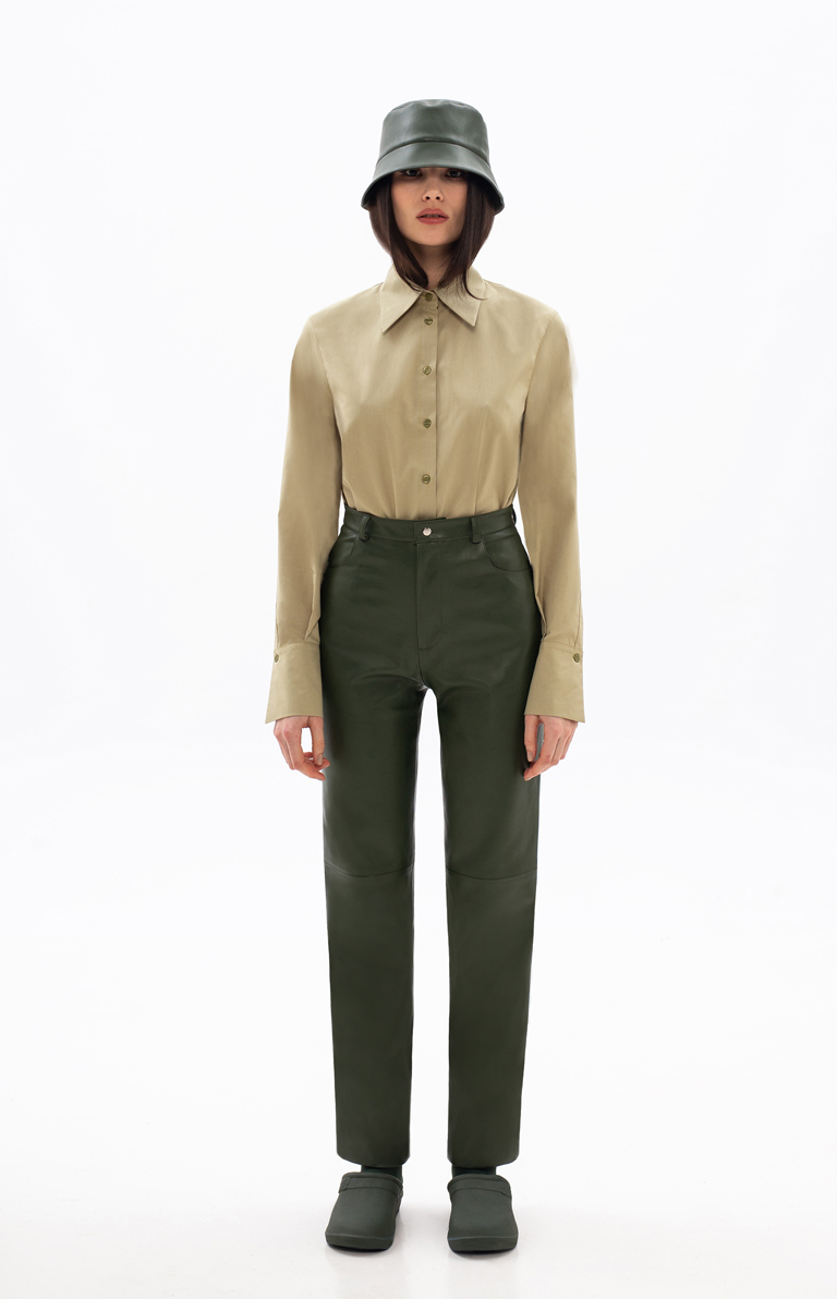 LIGHT GREEN ECO-LEATHER PANTS