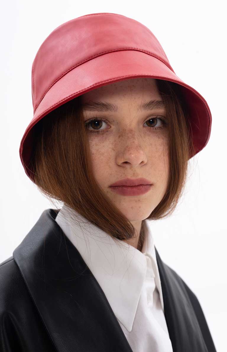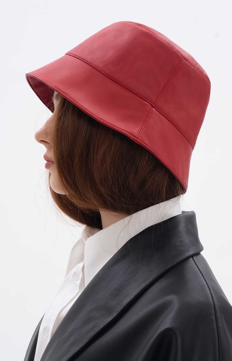 Presented in a classic red colour, the VERTIGO eco-leather bucket hat is what your red lipstick has been needing for a matching twin. Featuring a flexible yet robust form around your lovely head, this bucket hat is more than just a head accessory - you can treat it as an armor piece guarding your peace of mind. Also, it can easily become a staple accessory for a multitude of outfits, ranging from elegant to breath-taking and provocative looks.